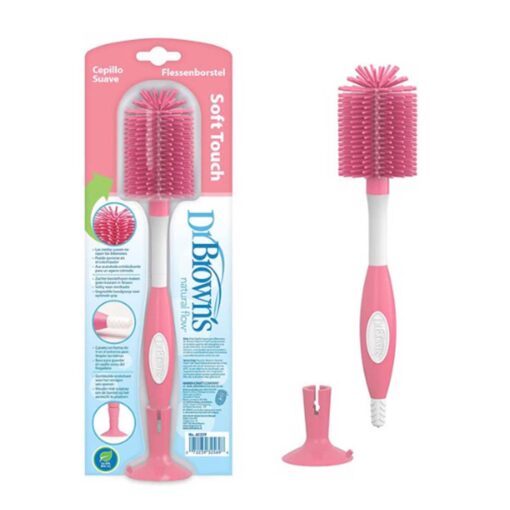برس شیشه شوی سیلیکونی دکتر براون در رنگ صورتی، یک ابزار کاربردی و ایمن برای شستوشوی انواع شیشه شیر، سرشیشه و بطریهای کودک است. طراحی این برس به گونهای انجام شده که بتواند به آسانی به تمامی نقاط بطری دسترسی پیدا کرده و با جنس سیلیکونی خود، بدون ایجاد خش یا آسیب، نظافتی کامل فراهم کند. دستهی بلند و خوشفرم آن، کنترل راحتتر را در حین شستوشو ممکن میسازد. این برس از مواد باکیفیت و فاقد مواد شیمیایی مضر ساخته شده است و گزینهای مناسب برای مادرانی است که به نظافت دقیق و سلامت کودک خود اهمیت میدهند.