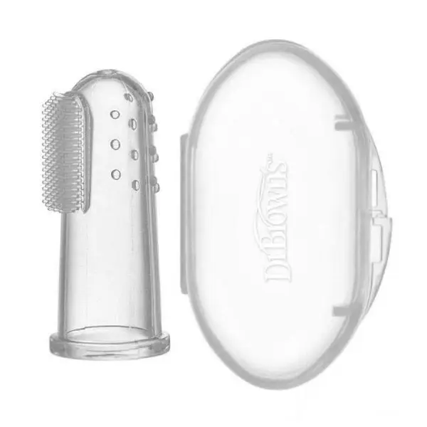 مسواک انگشتی دکتر براون، یکی از لوازم ضروری مراقبت از دهان و دندان نوزادان است که برای استفاده از سن 3 تا 18 ماهگی طراحی شده است. این مسواک سیلیکونی با برس نرم، به آرامی لثههای حساس نوزاد را تمیز کرده و از باقی ماندن ذرات شیر یا دارو روی لثهها جلوگیری میکند. پاکسازی منظم لثه باعث میشود دندانهای شیری کودک سفید، سالم و صاف رشد کنند. همچنین این مسواک برای ماساژ لثه نیز قابل استفاده است و در دوران دنداندرآوردن به کاهش خارش و بیقراری نوزاد کمک میکند. همراهی قاب محافظ نیز امکان نگهداری بهداشتی و حمل آسان را فراهم میکند.